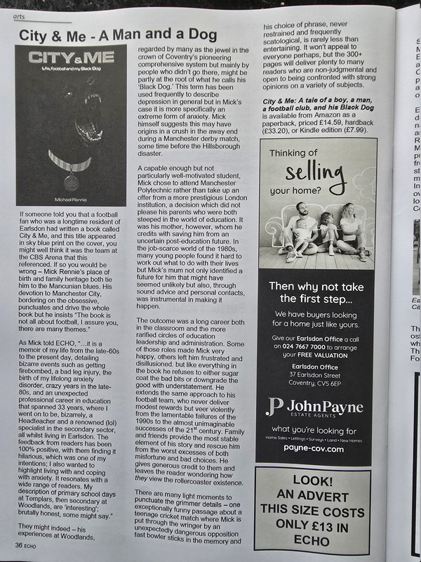 The Echo? What happened to the Telegraph?The local newspaper here in Coventry, The ECHO, came round and did a piece on the book. I had to smile as I explained some of the material to the reporter, who was a Coventry fan, knowing what he was going to read. He took away an author's copy, and I wondered how he would view my writing about Coventry City, my dislike for whom I do not hide in the book. He produced a fair report.
