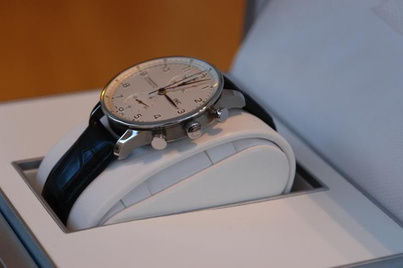 One is a IWC Portuguese Chrono-Automatic Stainless steel (I think) body, champagne face and leather strap. Immaculate/as new.